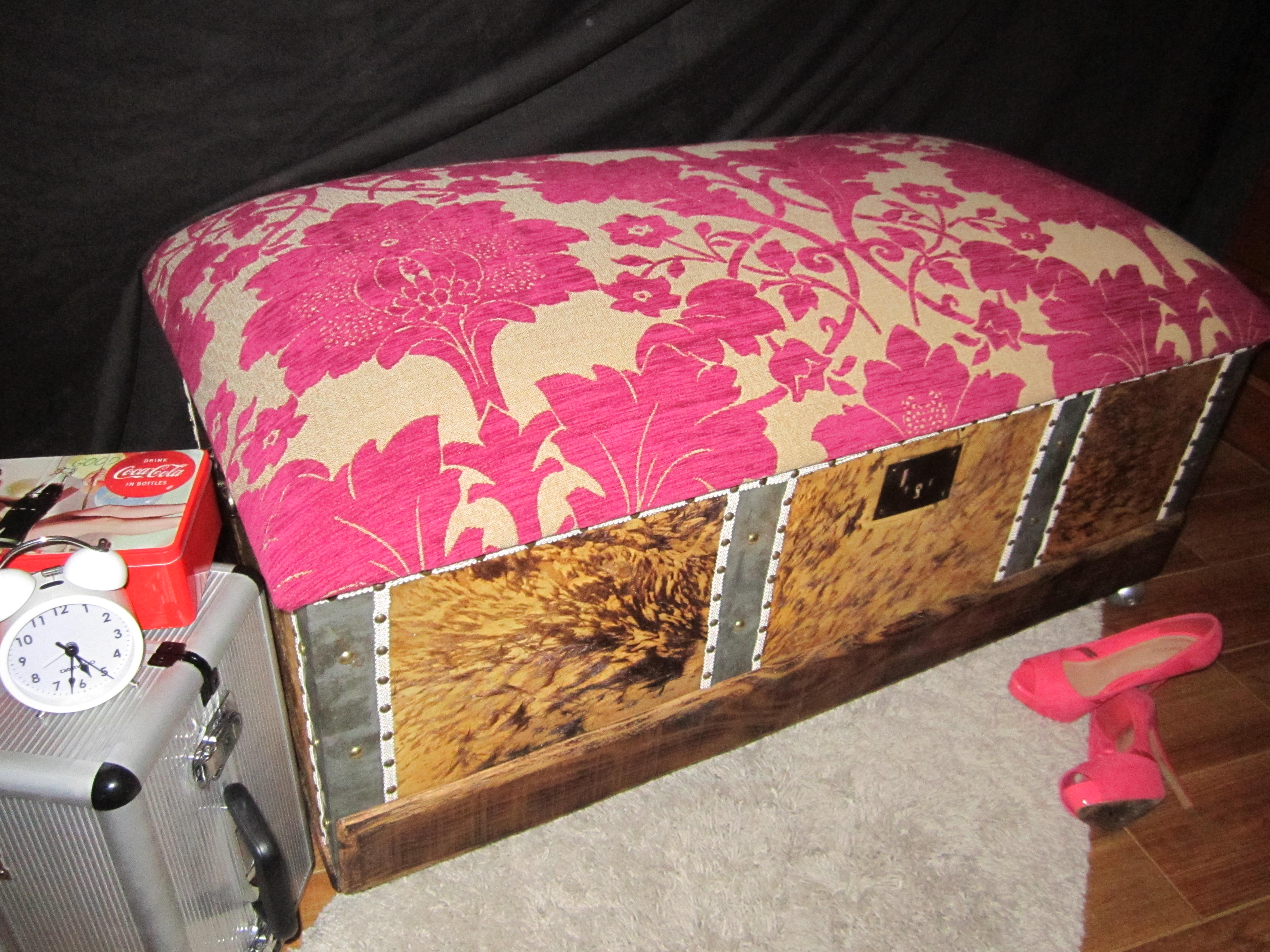 En esta ocasión vemos un baúl antiguo que encontré abandonado por su mal estado, debido a que este estaba muy deteriorado, al que incluso le faltaba la parte de arriba. Se me ocurrió la posibilidad de diseñar un zapatero y a la vez que realizara la función de un pie de cama o sillón, de este modo, seria práctico al igual que decorativo. La primera tarea fue la restauración del mismo, para posteriormente crear una tapa de cierre y tapizarla.