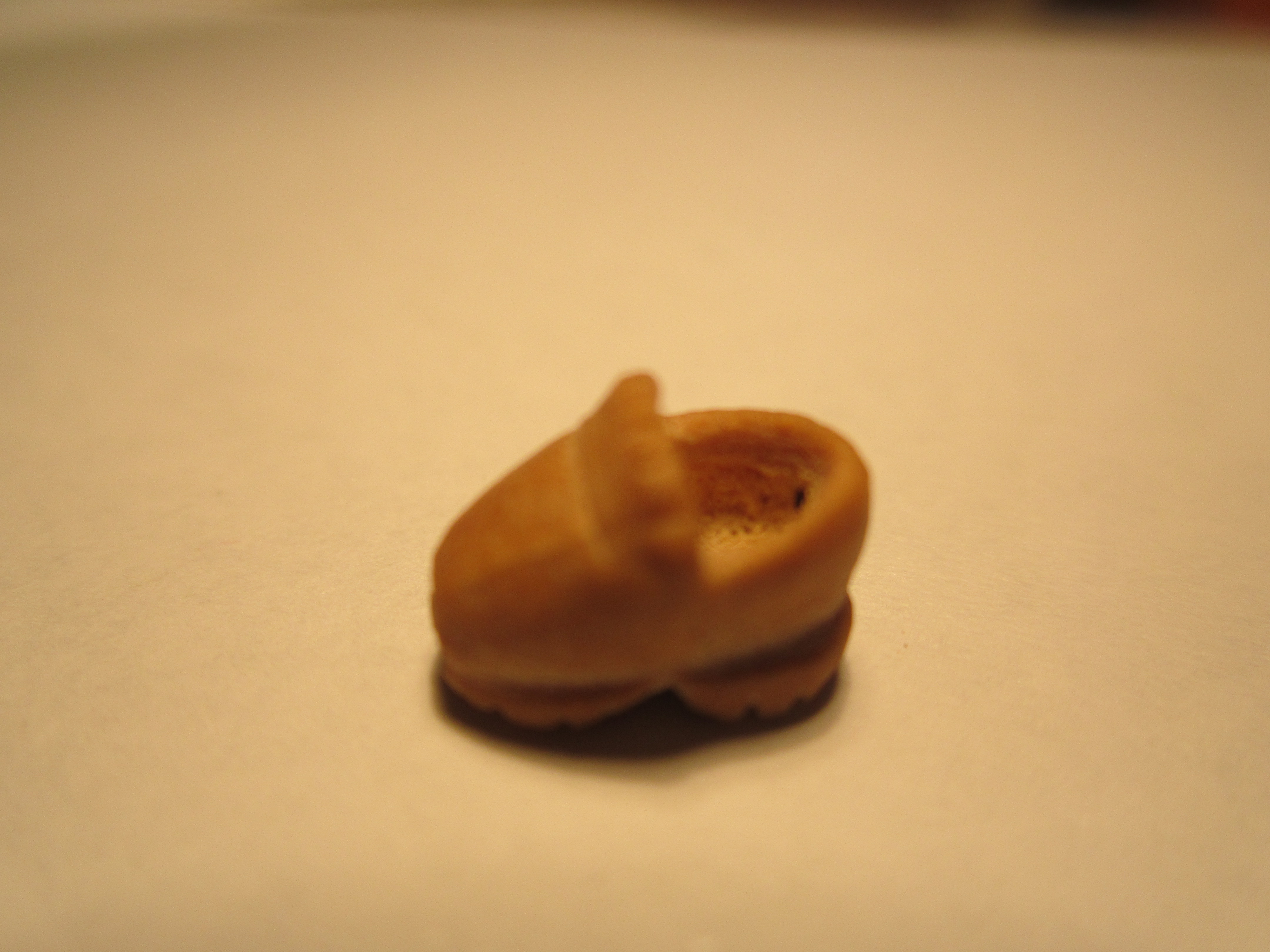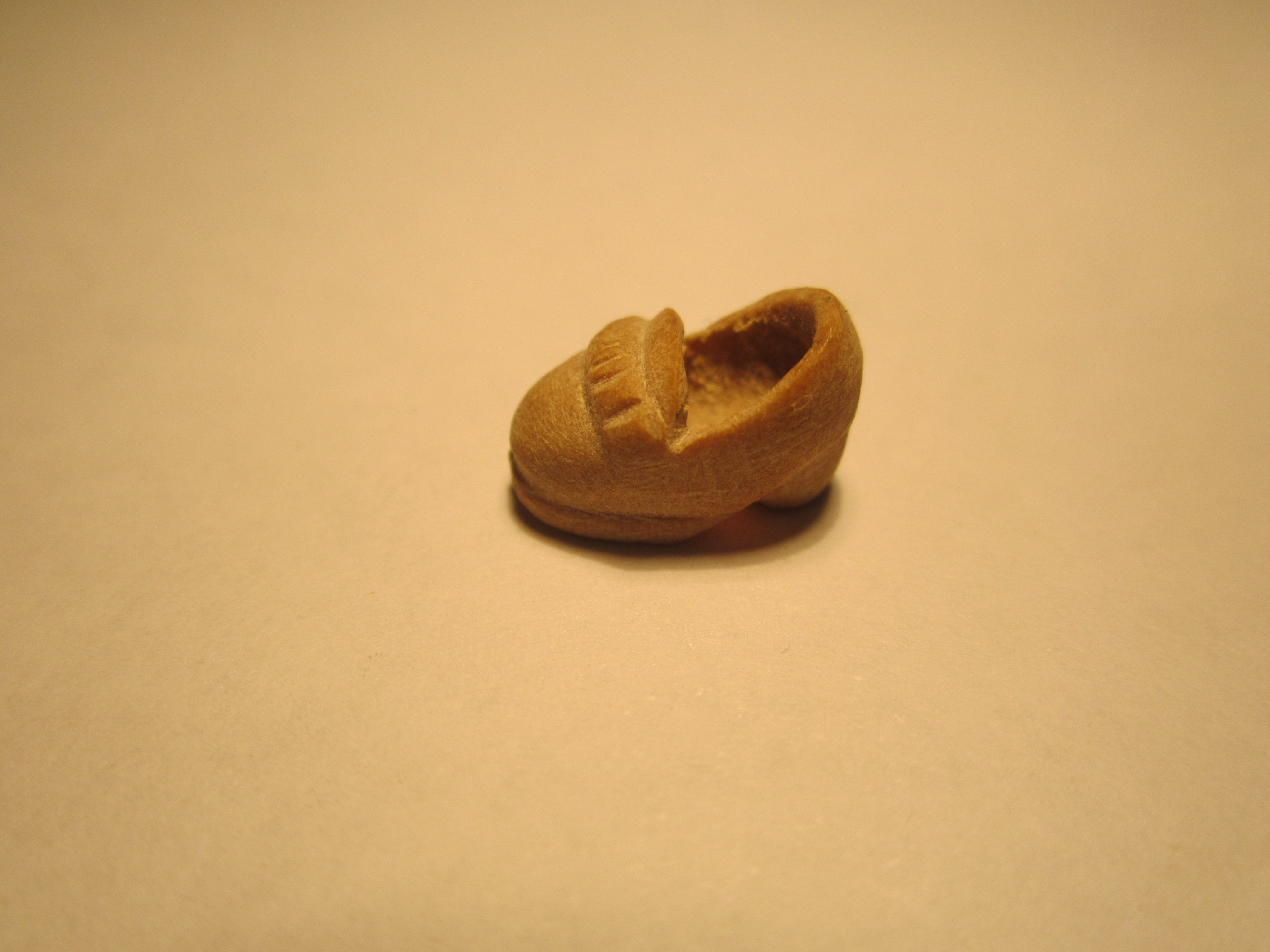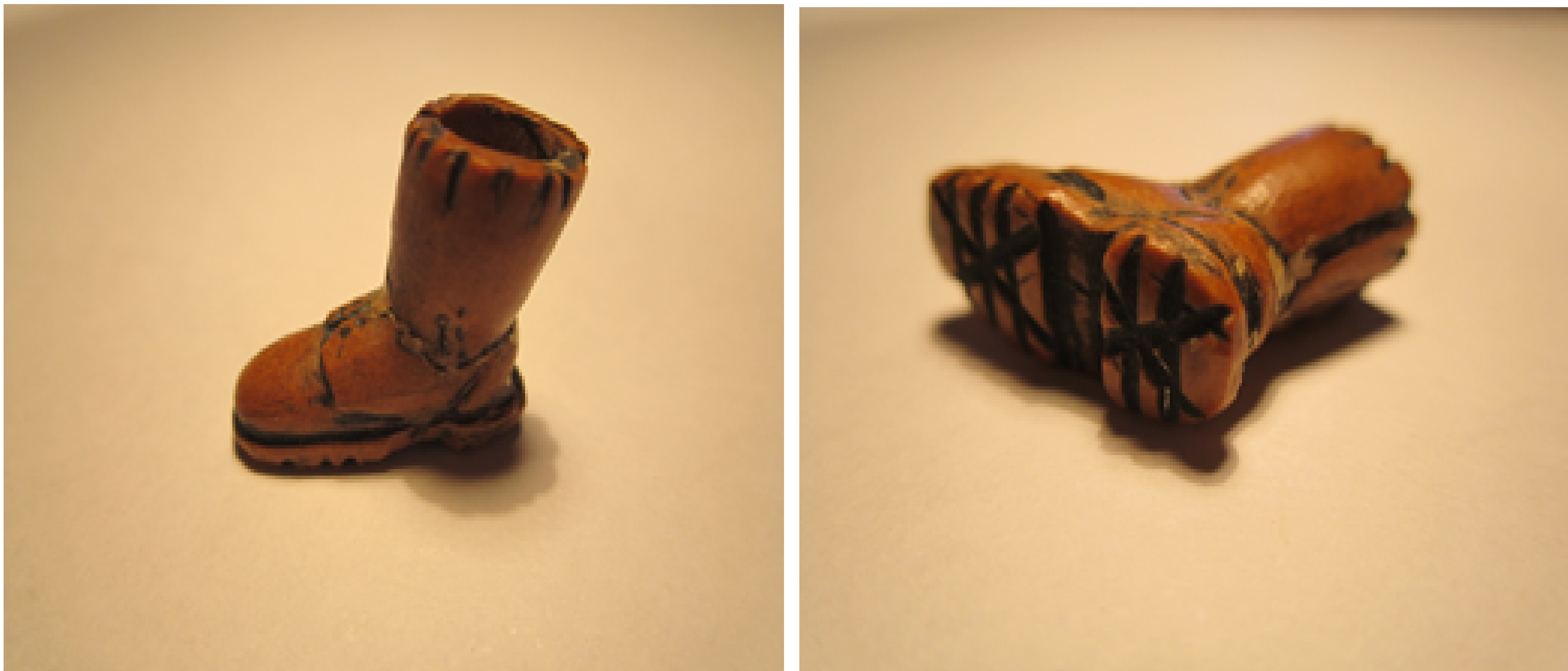 Imagen– Bota militar hecha a partir de la unión de dos huesos de aceituna.