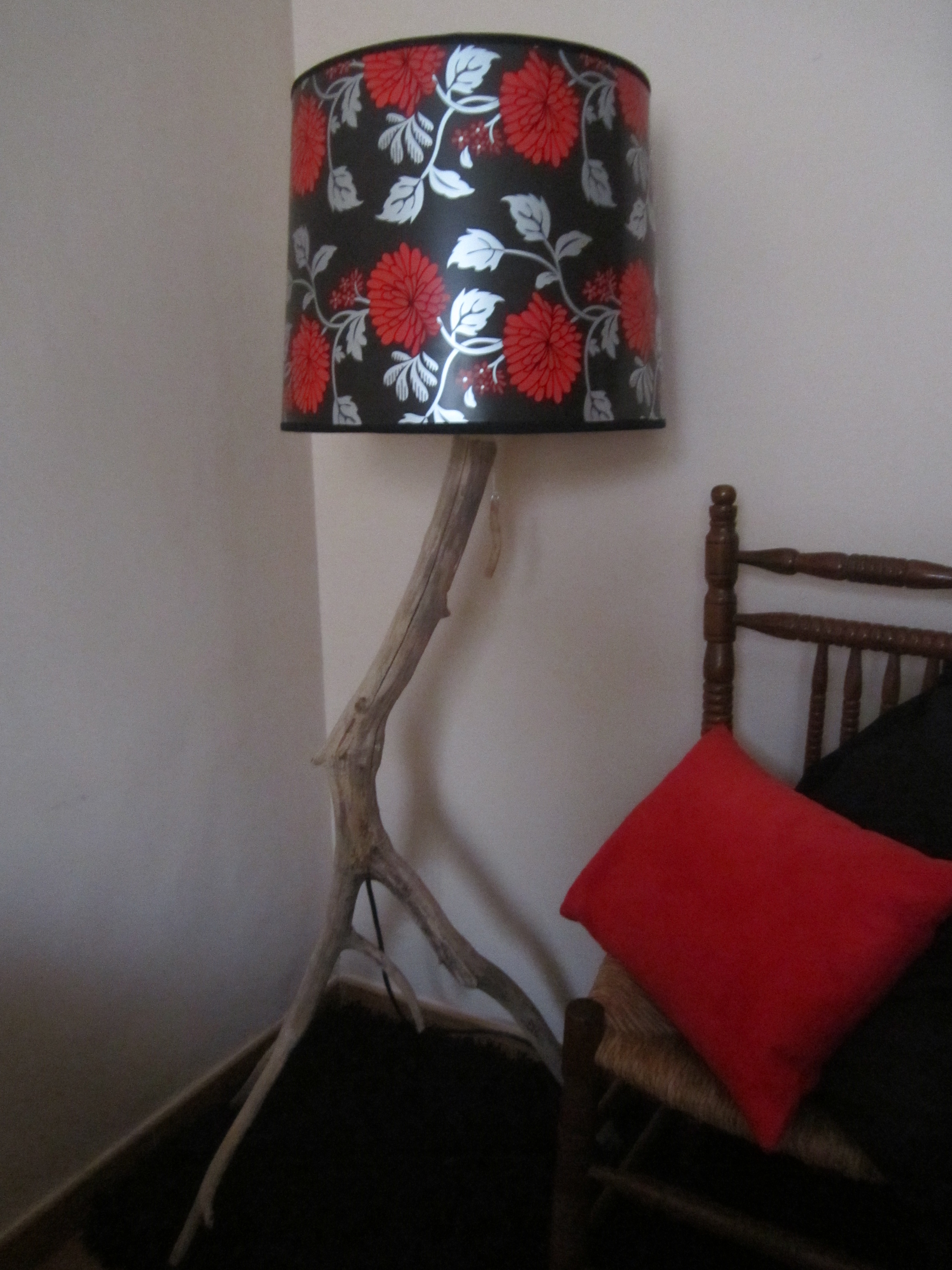 Esta semana he estado haciendo una lámpara de pie. Esta vez lo que os enseño surge a raíz de una rama que me encontré de forma casual mientras paseaba, llamándome la atención la forma que esta tenía. Entonces decidí realizar la idea que me rondaba por la cabeza y hacer con ella una lámpara.