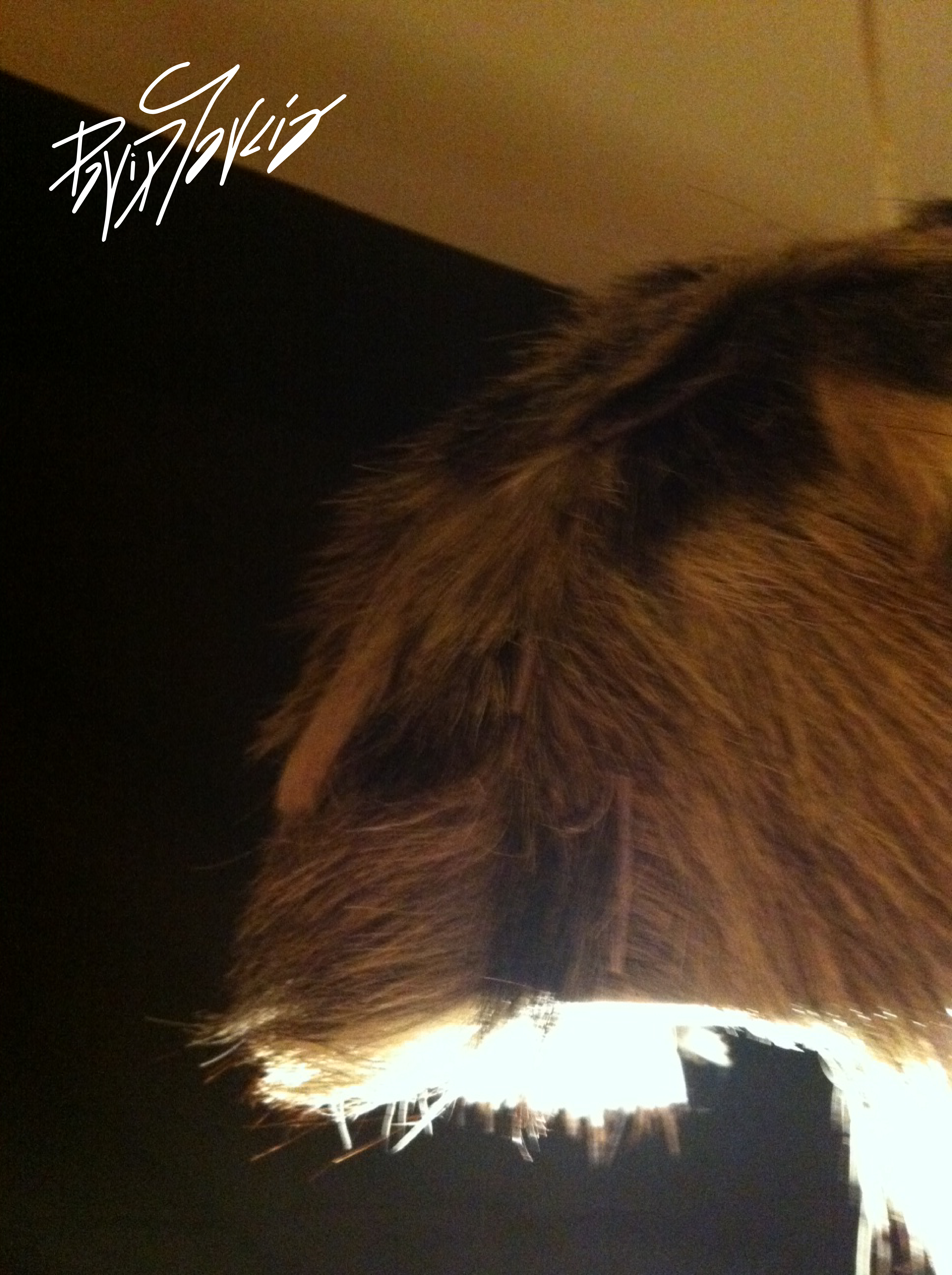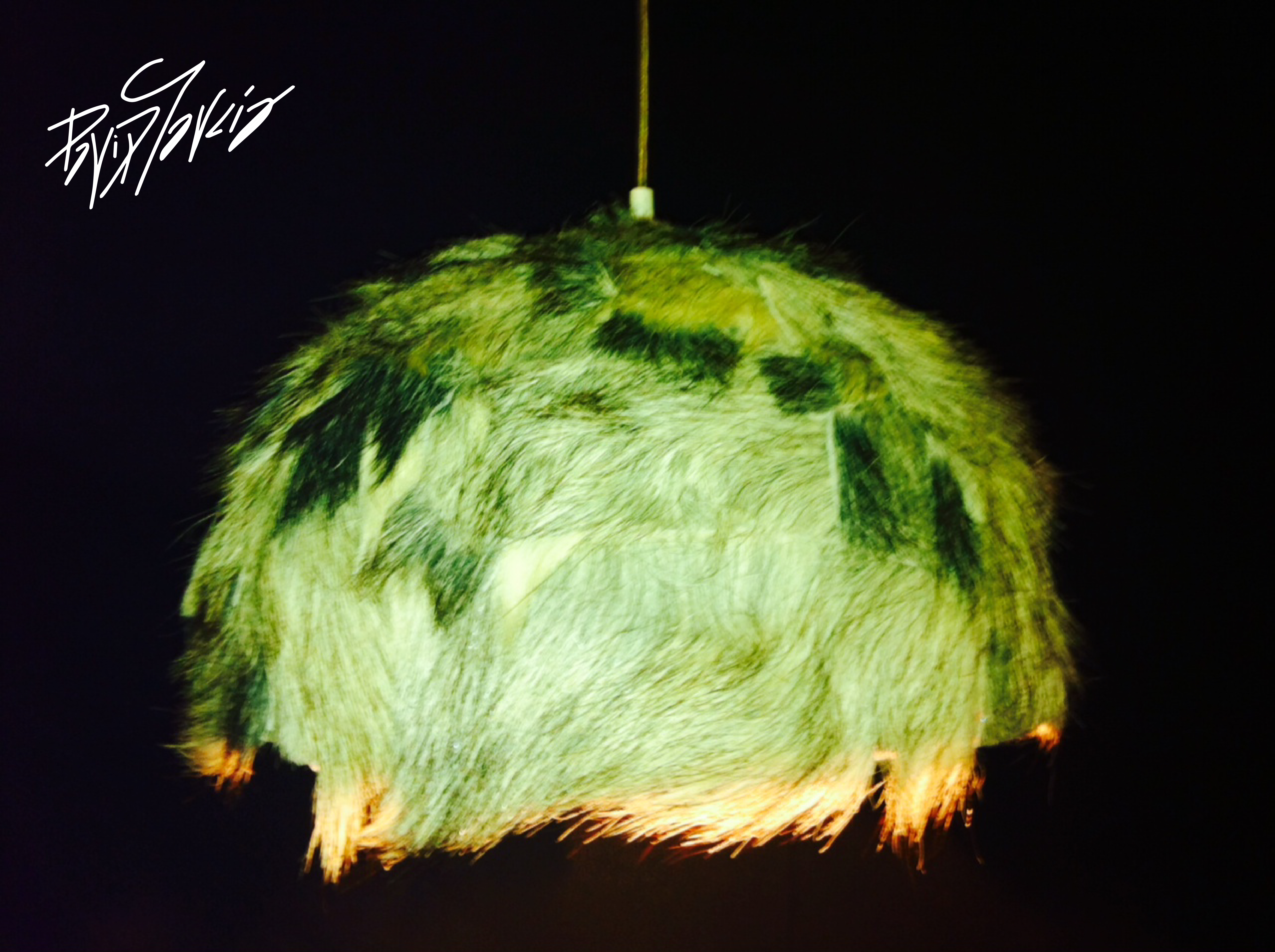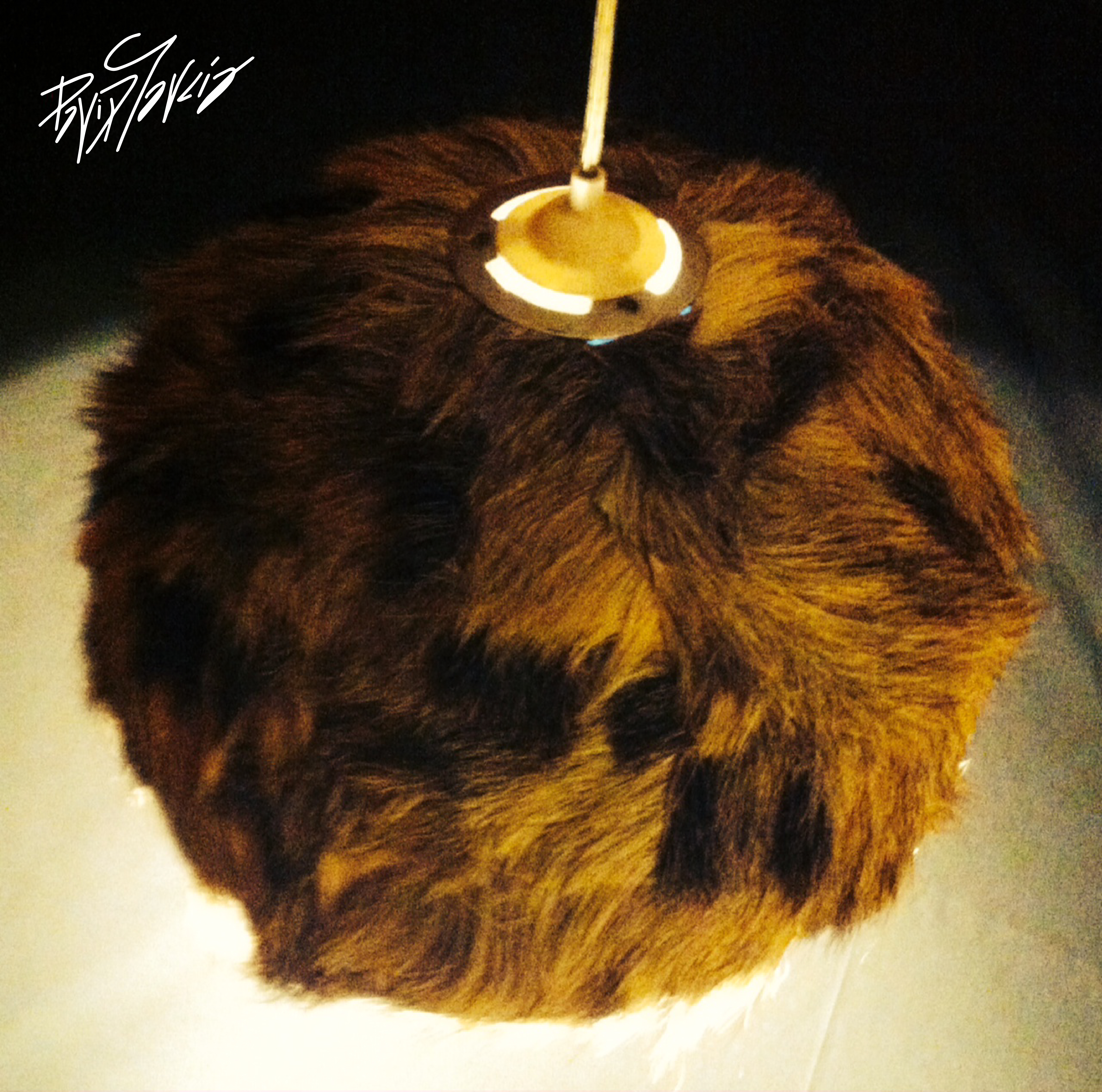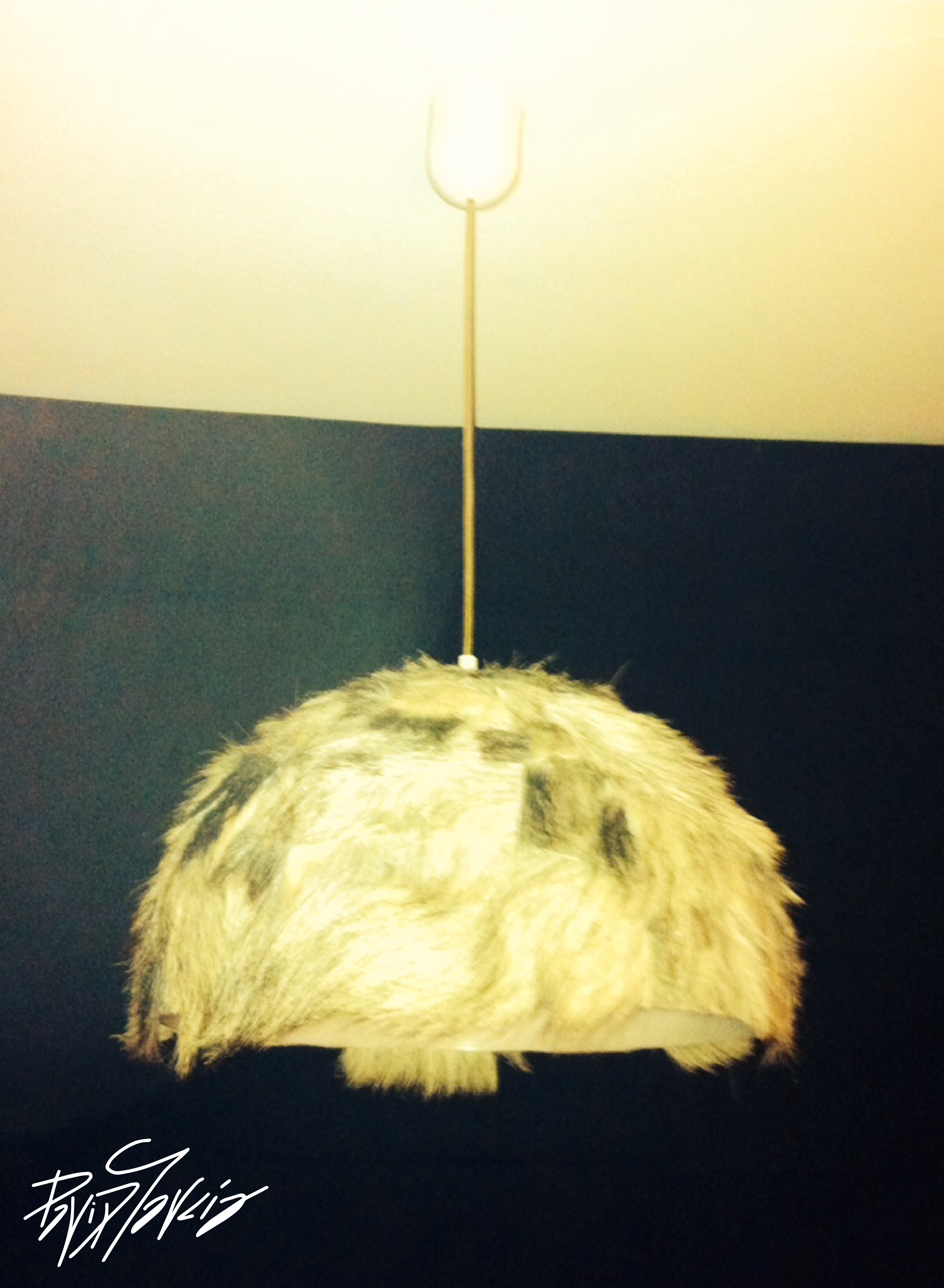 En esta ocasión os enseñamos una nueva lámpara de techo. La tulipa de esta, es en realidad a lo que podemos dar importancia, se trata de media esfera “tapizada” con piel de cabra natural, para ello reutilicé recortes de esta piel, jugando con sus propios colores y la dirección del pelo.